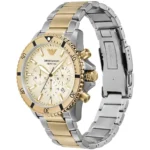 ساعة إمبوريو أرماني أصلية للرجال، موديل AR11606 دايفر ، بمينا دهبى، سوار معدني نصف دهبى.