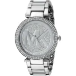 ساعة مايكل كورس أصلية للنساء ، موديل MK5925 باركر ، بمينا فضى ، سوار معدني فضي.