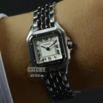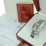 Cartier watch For Women In Egypt De Santos With Silver dial Silver Metal Strap . Battery machine . With Gift Box + Bag