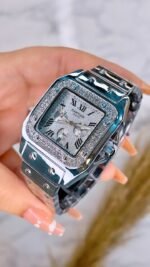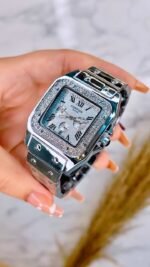 Cartier watches in Egypt For Men & Women Santos Collection 2023 with Shiny Silver Dial With Silver Color Strap