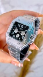 Cartier watches in Egypt For Men & Women Santos Collection 2023 with Black Dial With Silver Color Strap