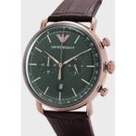 Original Emporio Armani Watch Aviator for Men AR11334 Green Dial . Leather Belt Strap With Brown Color . With Packing Armani Box + Bag