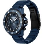 Original Emporio Armani Watch Diver for Men AR70009 Blue dial . Metal belt Strap with Blue color . With Packing Armani Box + Bag