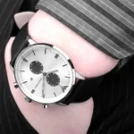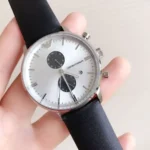 Original Emporio Armani Watch Gianni XLarge for Men AR0385 Silver dial Strap Leather belt with Black color . With Packing Armani Box + Bag