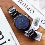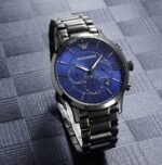 Original Emporio Armani  Watch Giovann for Men AR11348 Blue dial . Metal belt Strap with Black color . With Packing Armani Box + Bag