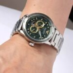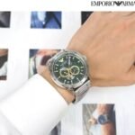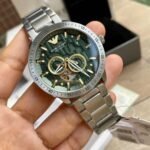 Original Emporio Armani Watch Mario Automatic for Men Ar60053 Green dial . Metal belt Strap with Silver color . With Packing Armani Box + Bag