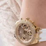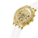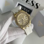 -5%Original Guess Watch Heiress for Ladies GW0407L2 Gold dial White Rubber Strap Belt . Japanese Machine . With packing Guess ( Box + Bag )