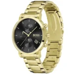 Original Hugo Boss Watch For men In Egypt Integrity 1513781 Black dial Gold Metal Strap . With Original packaging Hugo Boss Box + Bag