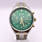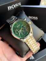 -13%Original Hugo Boss Watch For men In Egypt Companion 1513878 With Green dial Silver & Gold Metal Strap With packing Boss ( Box + Bag )
