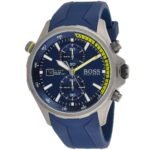 Original Hugo Boss Watch For men In Egypt Globetrotter 1513821 With Blue dial Blue Rubber Strap With packing Boss ( Box + Bag )