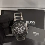 Original Hugo Boss Watch For men In Egypt Supernova 1513368 Black dial Black Silver Rubber Metal Strap . With Original packaging Hugo Boss Box + Bag