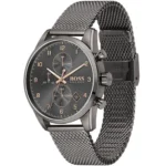 Original Hugo Boss Watch Skymaster For men In Egypt 1513837 Gray dial Grey Mesh Metal Strap . With Original packaging Hugo Boss  Box + Bag