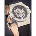 -14%Original Maserati Automatic Watch For men In Egypt Potenza R8821108001 Skeleton Dial , Black Leather Strap .