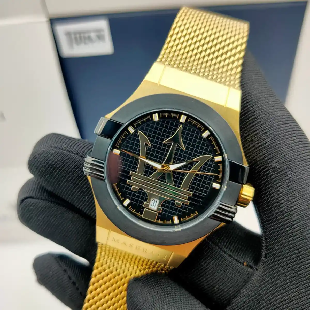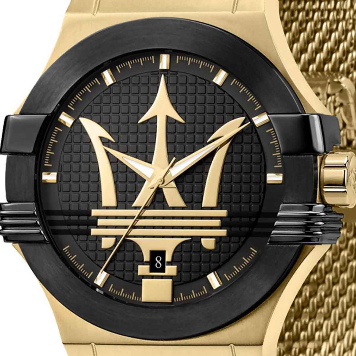 -6%Original Maserati Watch For men In Egypt Potenza R8853108006 Black Dial , Gold Metal Mesh Strap .