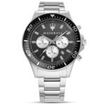 Original Maserati Watch For men In Egypt Sfida R8873640004 With Black dial Silver Metal Strap . With packing Maserati Box + Bag