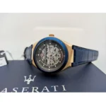 Original Maserati Automatic Men’s Watch In Egypt Triconic R8821139001 Skeleton Dial , Blue Leather Strap .