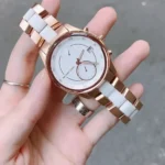 Original Michael Kors Watch Briar For Women MK6467 White dial Rose Gold & White Metal Strap Color . Japanese Machine With packing MK Box + Bag