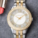 Original Michael Kors Watch Harlowe For Women MK4811 Gold Crystal dial Silver & Gold Metal Strap Color . Japanese Machine With packing MK Box + Bag