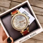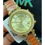 Original Michael Kors Watch Parker For Women MK6139 Gold dial Gold & Orange Metal Strap Color . Japanese Machine With Original packing MK Box + Bag