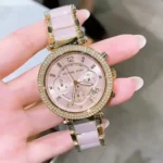 Original Michael Kors Watch Parker For Women MK6326 Pink dial Pink and Rose Gold Metal Strap Color . Japanese Machine With Original packing MK Box + Bag