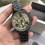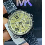 Original Michael Kors Watch Wren For Women MK5961 Gold dial Black Metal Strap Color . Japanese Machine With packing MK Box + Bag
