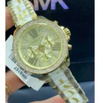 Original Michael Kors Watch Wren For Women MK6157 Gold dial Gold & White Metal Strap Color . Japanese Machine With packing MK Box + Bag