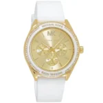 Original Michael Kors Watch For Women MK7267 Gold dial White Rubber Strap Color . Japanese Machine With packing MK Box + Bag