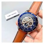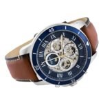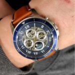 Original Fossil Watch Grant Sport automatic for men ME3140 Blue dial Strap Leather belt with Brown color . With Packing Fossil Box + Bag