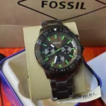 Original Fossil Watch Bannon Smoke for men BQ2504 Oily With Green Numerals dial Strap Metal belt with Grey color . With Packing Fossil Box + Bag