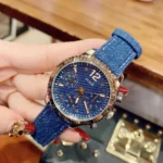 Original Guess Watch for Women Contrast W1057L1 Blue dial Jeans Strap Blue color Belt Japanese Machine . With packing Guess ( Box + Bag )