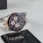 Original Guess Watch Odyssey for men W1107G3 With Blue dial Metal Strap Silver & Rose Gold color Belt . Japanese Machine With packing Guess  Box + Bag