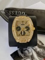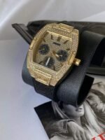 Original Guess Watch Phoenix for Unisex GW0105L2 With Gold dial Rubber Strap Black color Belt Japanese Machine . With packing Guess ( Box + Bag )