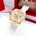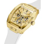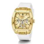 -10%Original Guess Watch Phoenix for Men GW0202G6 With Gold dial Rubber Strap White color Belt Japanese Machine . With packing Guess ( Box + Bag )
