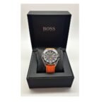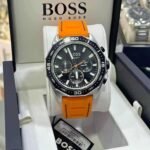 Original Hugo Boss Watch For men In Egypt Energy 1513970 With Black dial Orange Rubber Strap With packing Boss Box + Bag