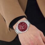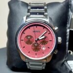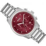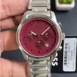 Original Hugo Boss Watch For men In Egypt Trace 1514004 With Red dial Silver Metal Strap . With packing Boss Box + Bag