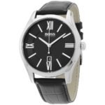Original Hugo Boss Watch For men In Egypt Ambassador 1513022 With Black dial Black Leather Strap With packing Boss ( Box + Bag )