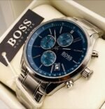 Original Hugo Boss Watch For men In Egypt Driver 1513081 With Dark Blue dial Silver Metal Strap With packing Boss ( Box + Bag )