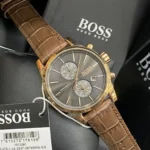 -5%Original Hugo Boss Watch For men In Egypt Jet 1513281 With Grey dial Brown Leather Strap . With packing Boss Box + Bag