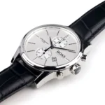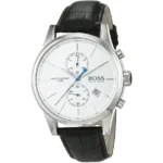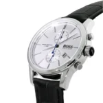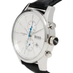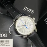 -3%Original Hugo Boss Watch For men In Egypt Jet 1513282 With Silver dial Black Leather Strap . With packing Boss Box + Bag
