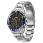 Original Lacoste Watch For Men Tiebreaker 2011155 Black dial Silver Metal Strap Black , Blue Case Color