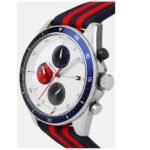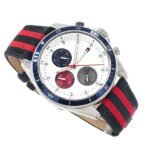 Original Tommy Hilfiger For men In Egypt Parker 1792035 With Silver dial Blue Red Textile Strap . With packing Tommy Hilfiger ( Box + Bag )