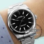 -8%Rolex Oyester Perpetual Watch For Men In Egypt Silver Metal Strap Black Dial Color Swiss Design . Japanese Movement