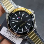 Original Tommy Hilfiger Watch For men In Egypt Logan 1792013 Black dial Half Gold Metal Strap . With packing Tommy Hilfiger Box + Bag