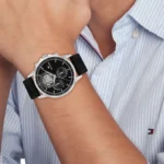 -14%Original Tommy Hilfiger Watch For men In Egypt Stewart 1710605 With Black dial Black Leather Strap .
