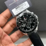 Original Tommy Hilfiger Watch For Men Owen For Men 1791964 Black dial Black Leather  Strap .