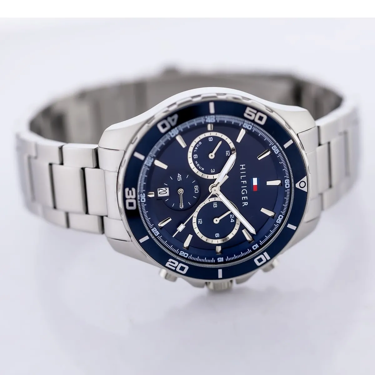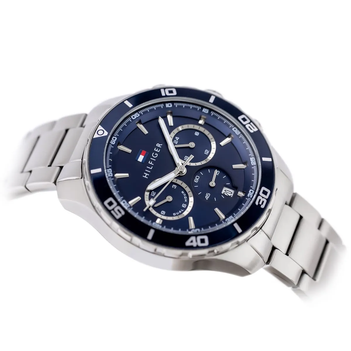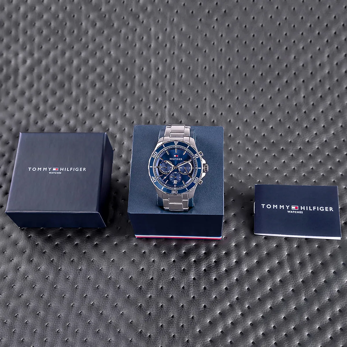 Original Tommy Hilfiger Watch For Men Jordan For Men 1792094 Blue dial Silver Metal Strap .