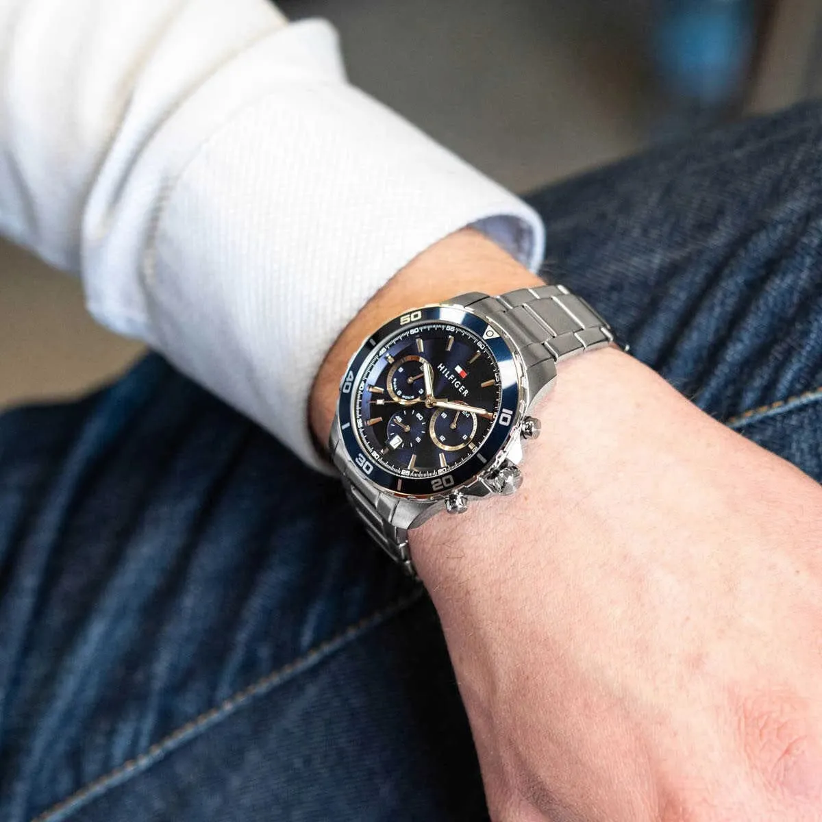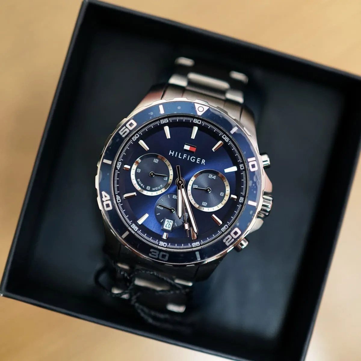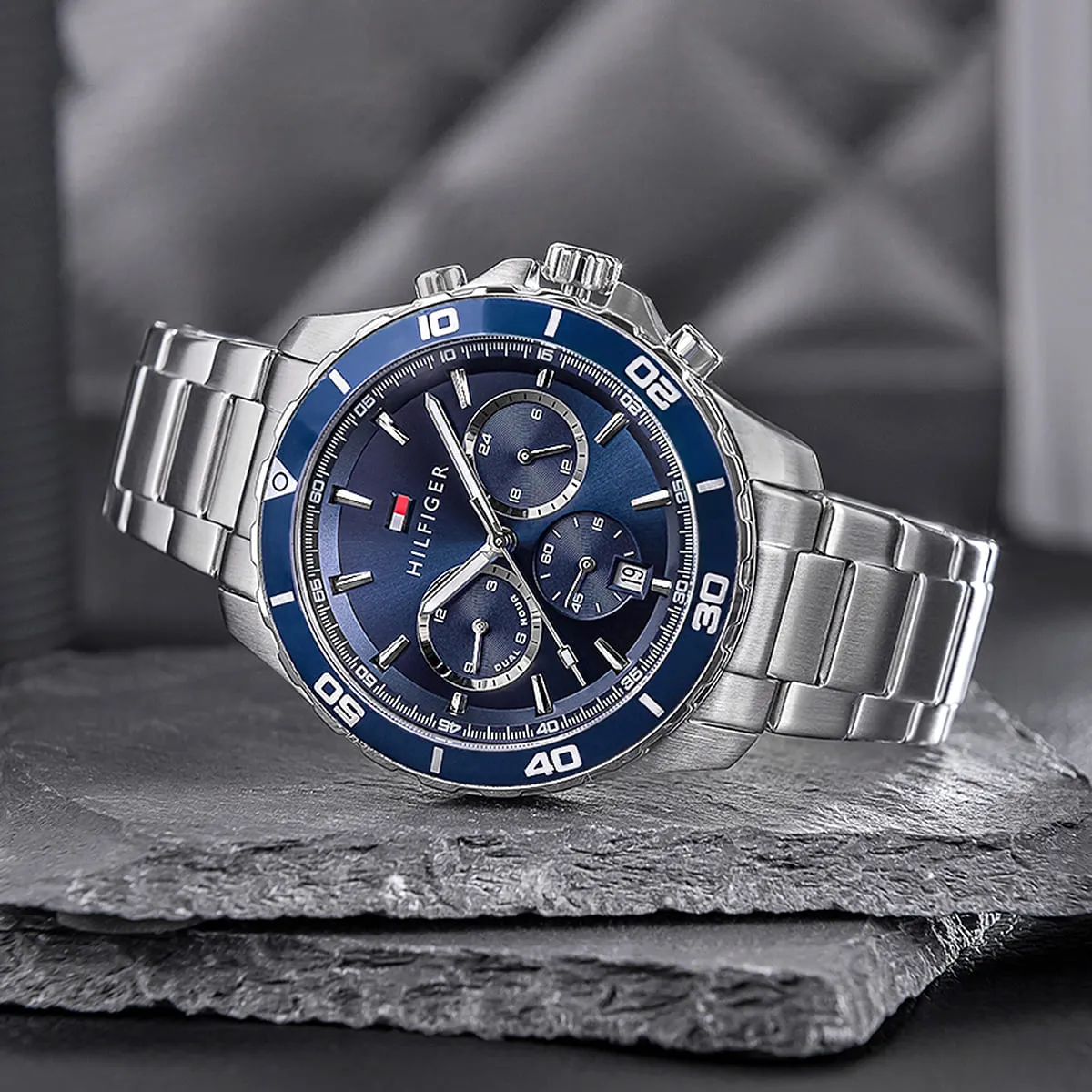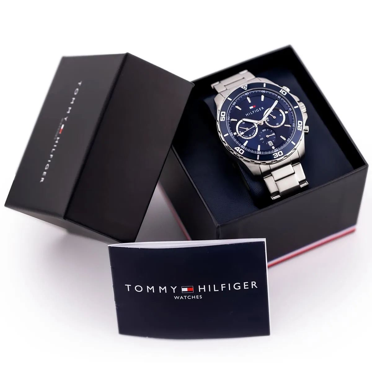Original Tommy Hilfiger Watch For Men Jordan For Men 1792094 Blue dial Silver Metal Strap .