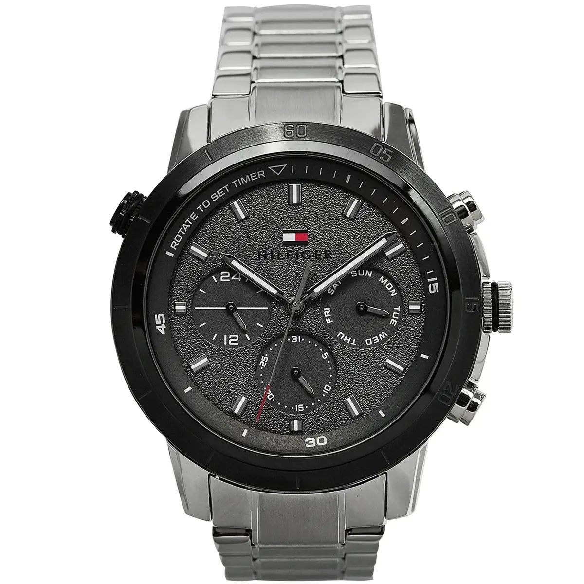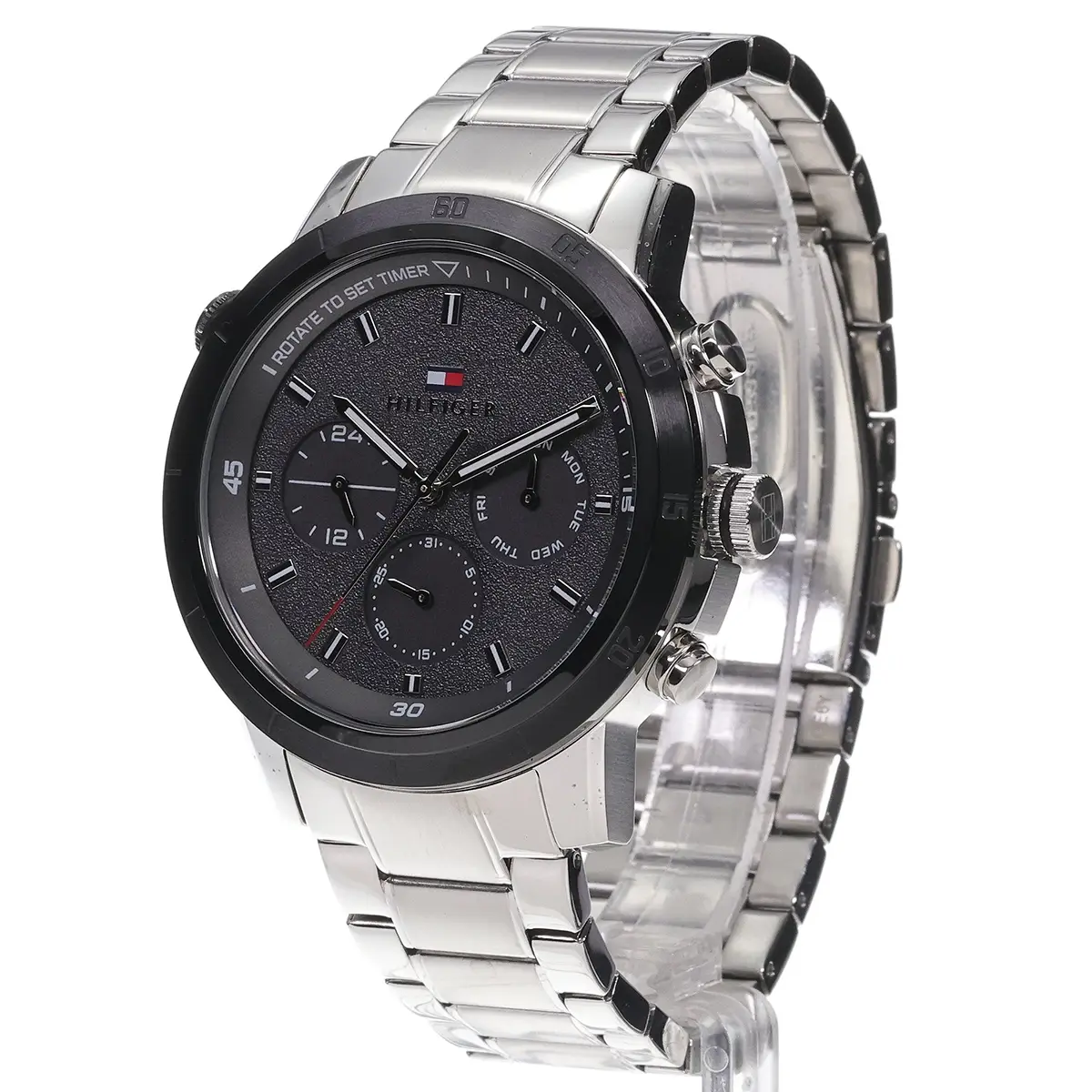 Original Tommy Hilfiger Watch For Men Troy For Men 1792106 Black dial Silver Metal Strap .