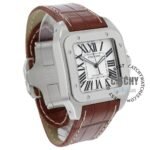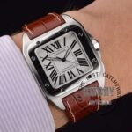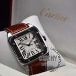 Cartier watch For men In Egypt de santos With White dial Brown Leather Strap . automatic machine . With Gift ( Box + Bag )