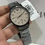 Original Emporio Armani Watch Renato for Men AR11183 Beige dial Strap Metal belt with Gray color . With Packing Armani Box + Bag